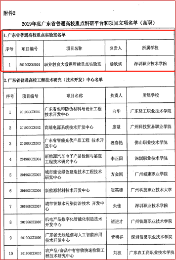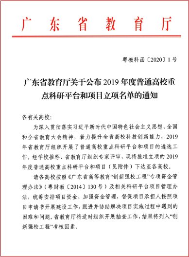 2019年度广东省普通高校重点科研平台和项目立项(高职)
